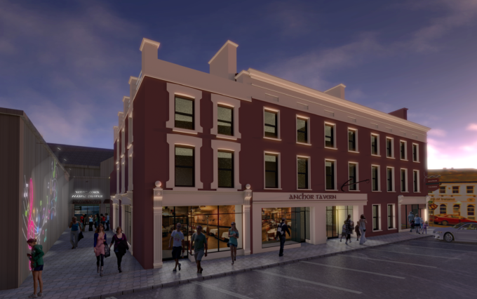 “Existing building rehab and adaptation. Schematic design for historic preservation of façade and conversion of hotel to retail and office space.”